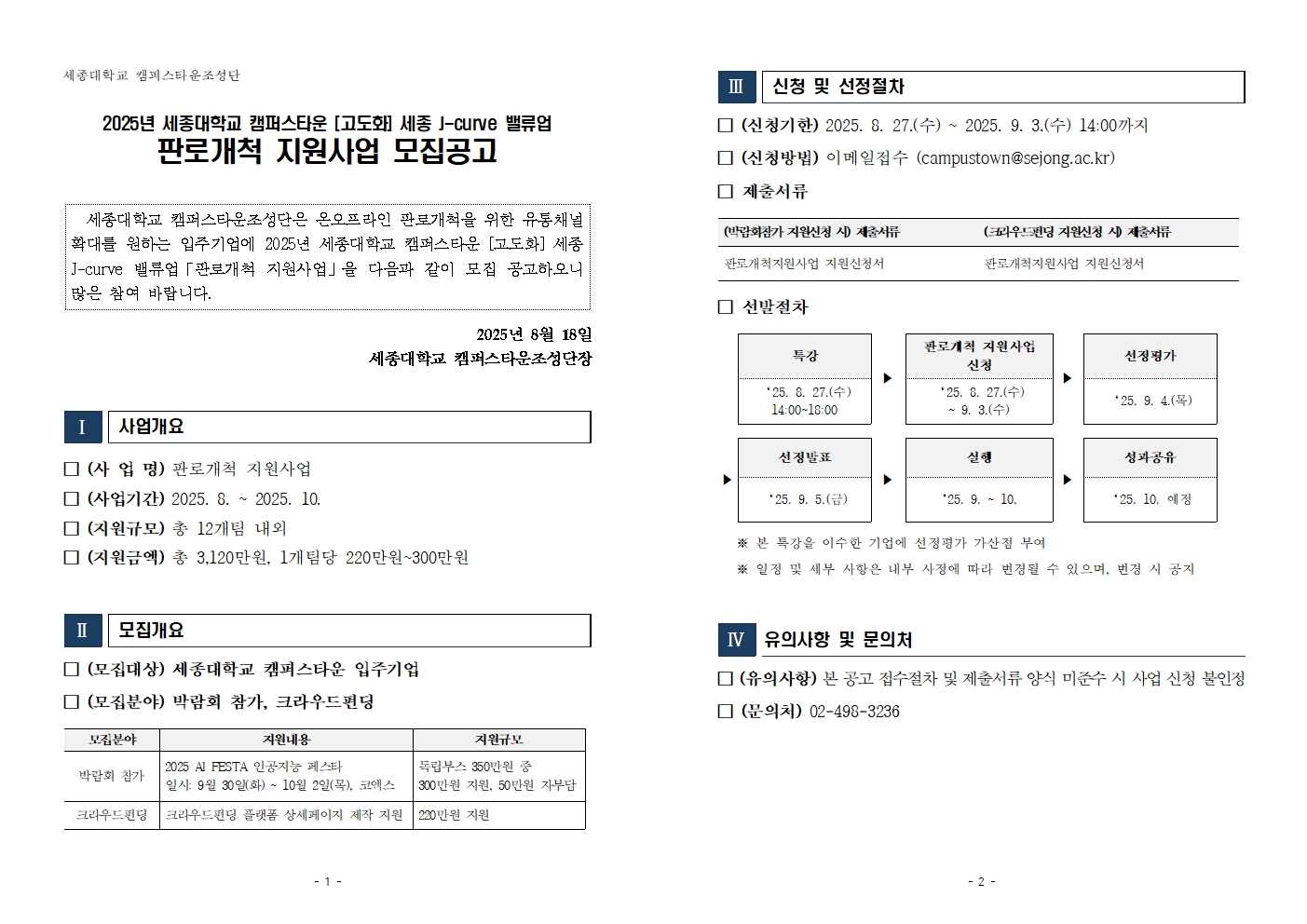 2025년 세종대학교 캠퍼스타운 입주기업의 제품, 서비스 시장성 검증 및 신규 판로개척의 기회를 제공하고자